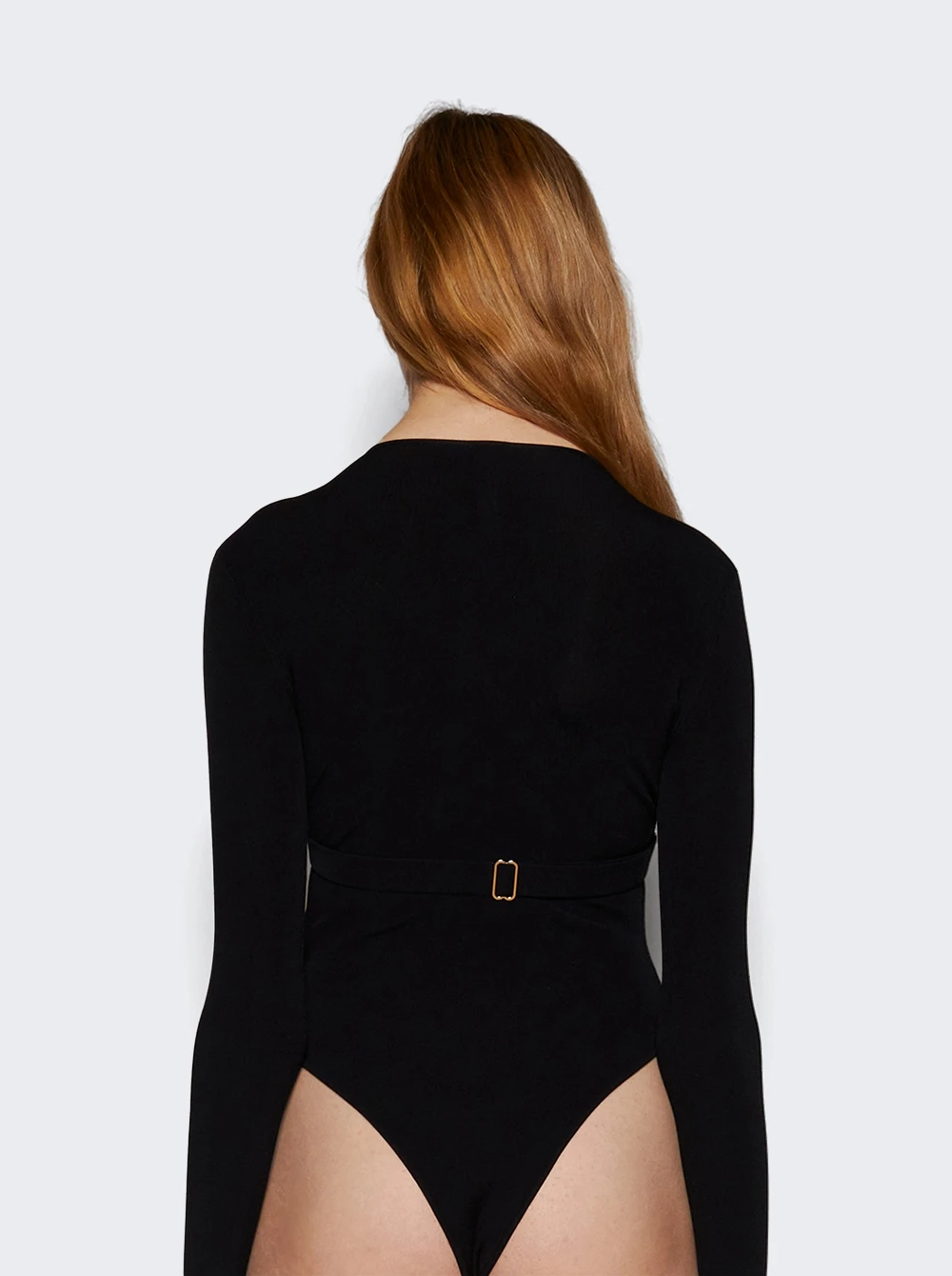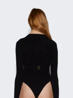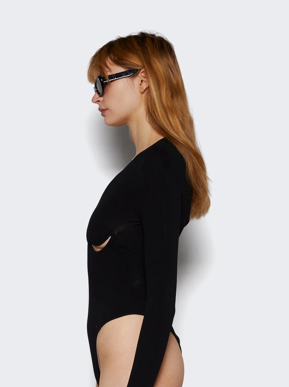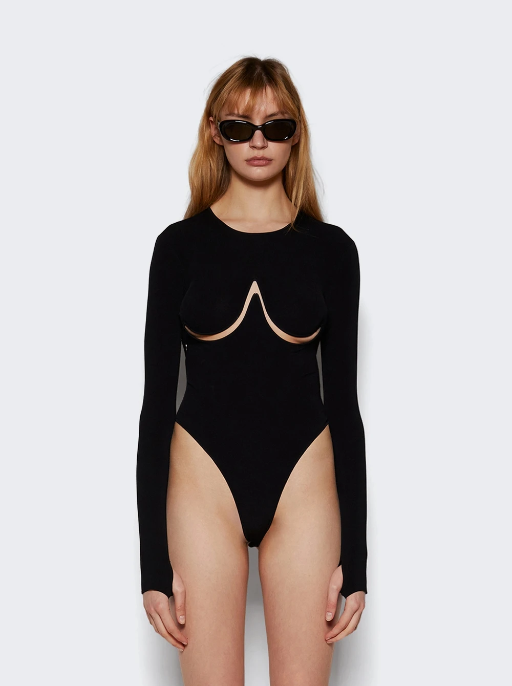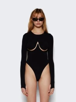 - Long sleeve bodysuit featuring a double monowire for a cut-out at underbust