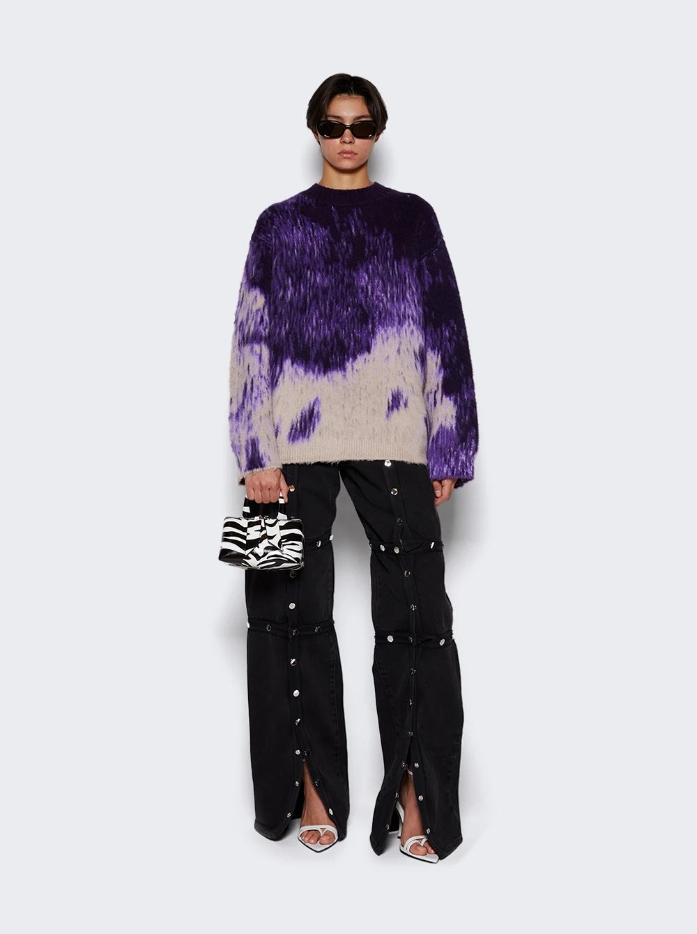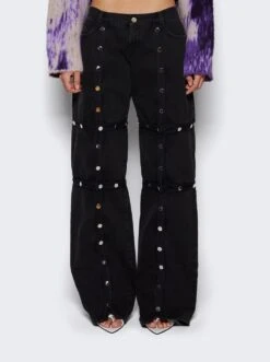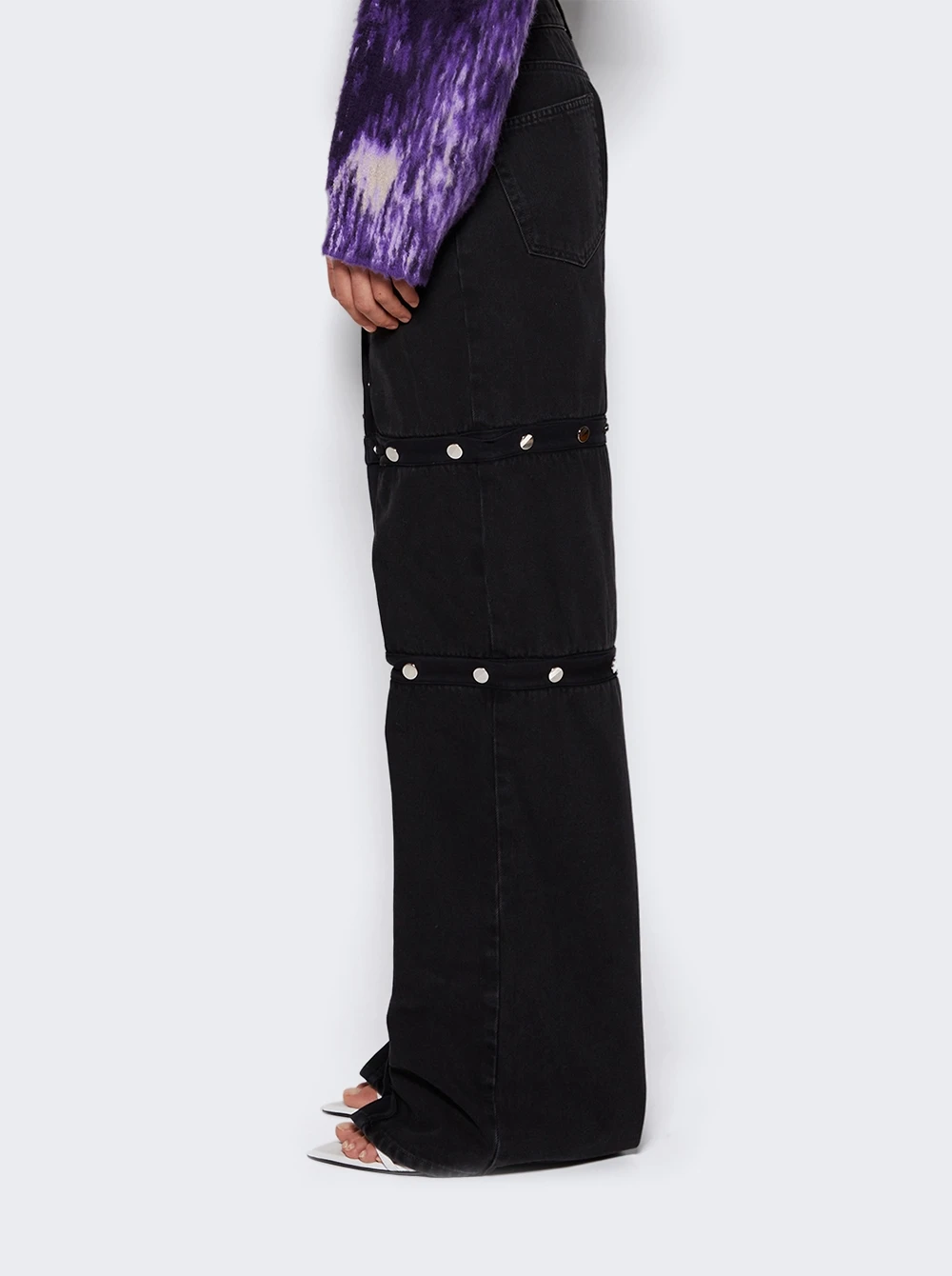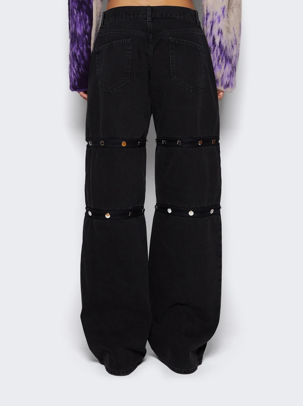 - Deconstructed design with metal snap button throughout