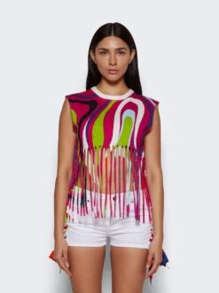 - Fringed hemline