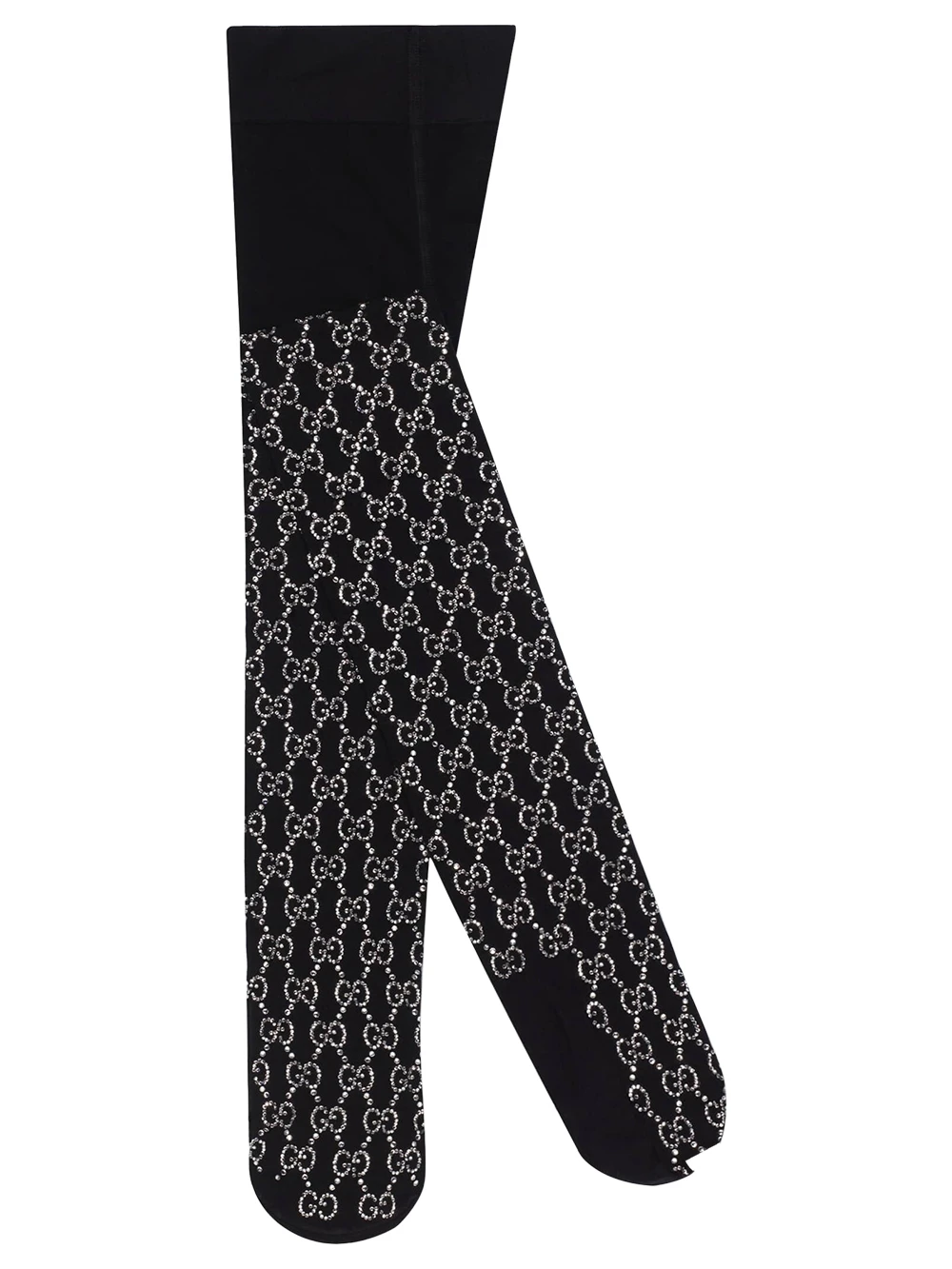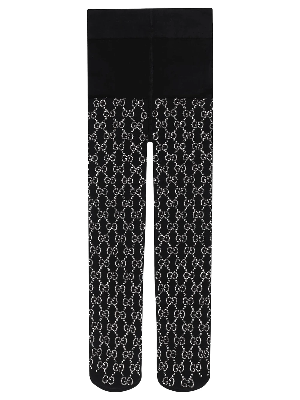 Diamond logo print tights by Gucci featuring a classic high-waisted silhouette embellished GG supreme house logos throughout. Let these ultra-chic party-ready stockings add a dashing touch to any evening edit.