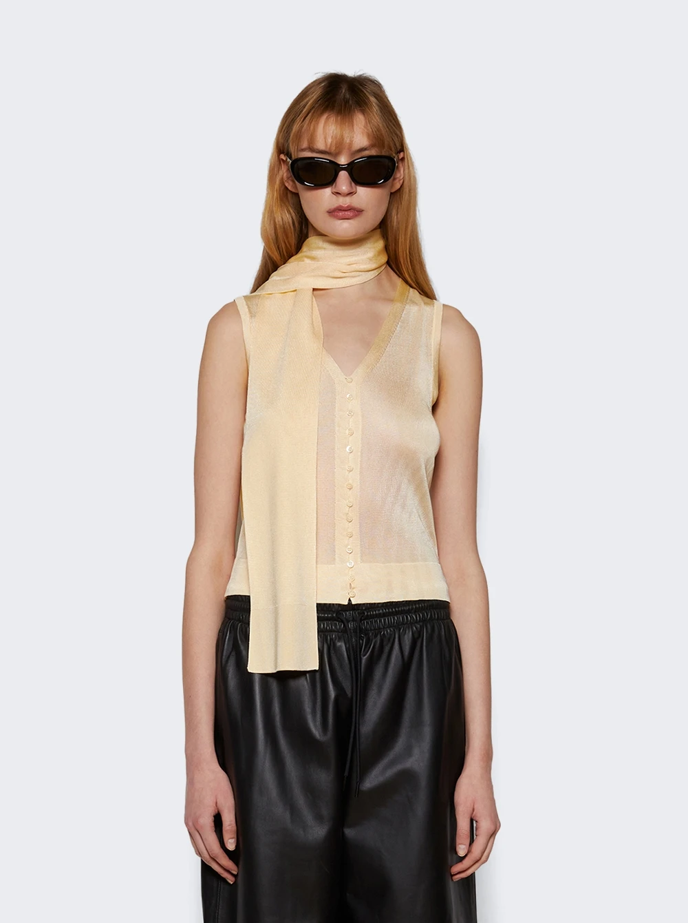 - Semi-sheer top with scarf neck