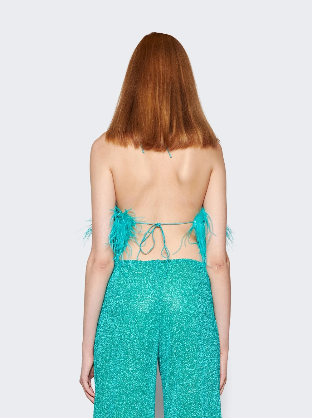 Composition: 64% polyamide, 36% metallics; 92% polyamide, 8% elastane; 100% real ostrich feathers