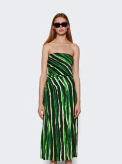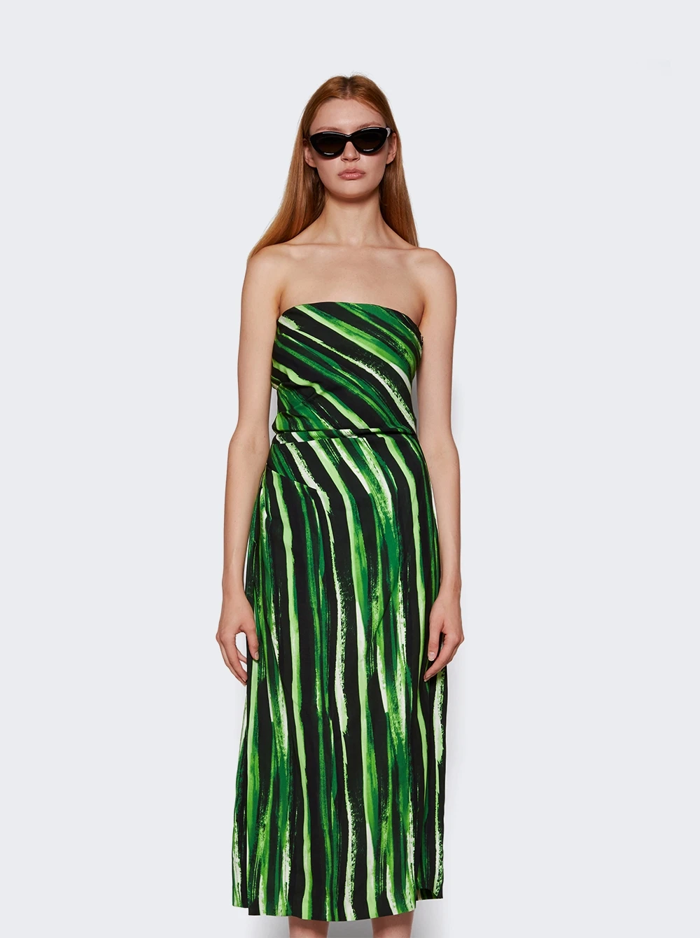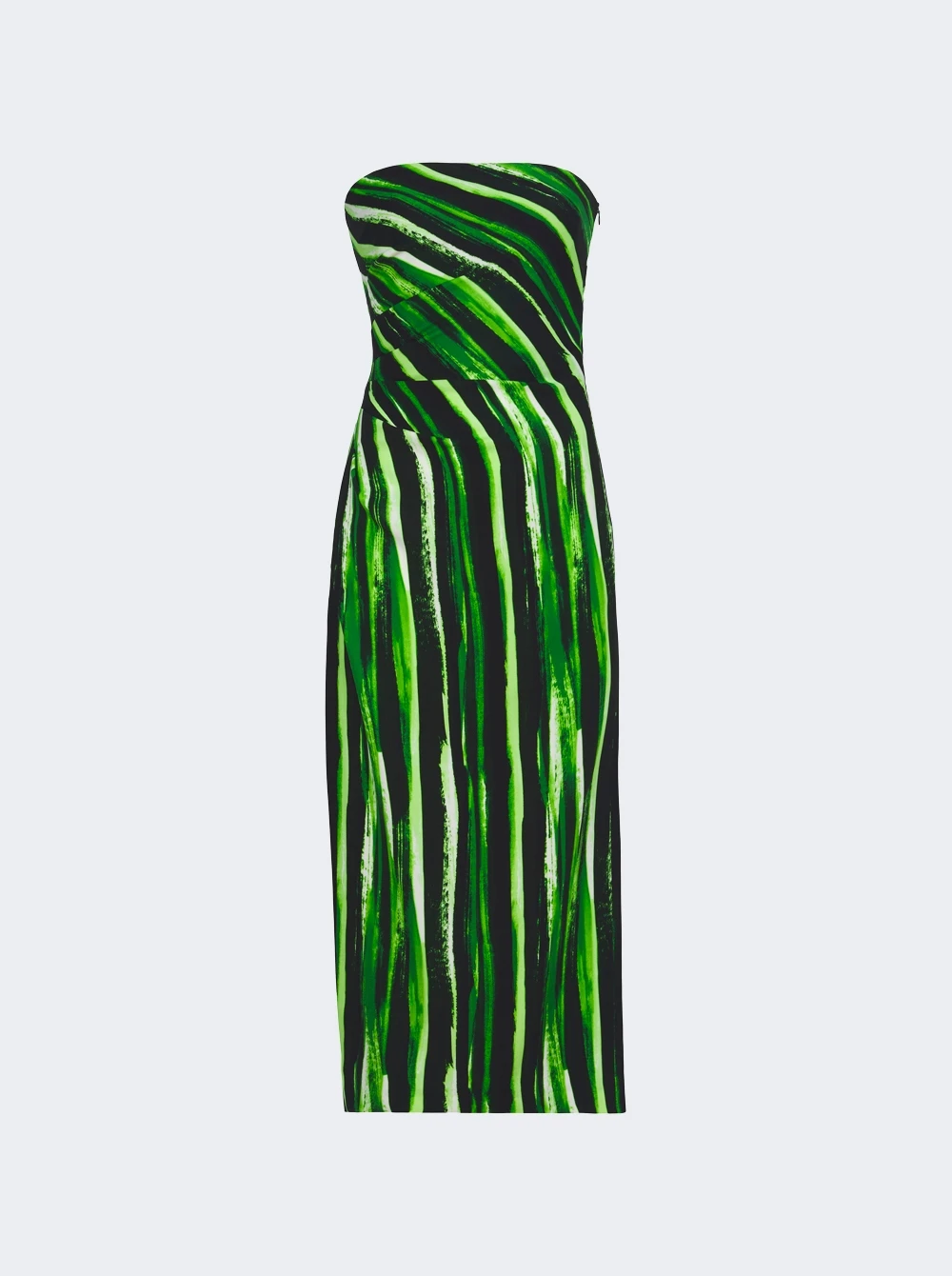 - Strapless silhouette