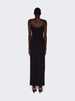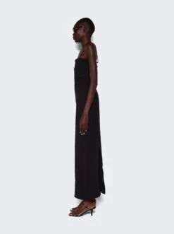 - Fitted floor-length bandeau dress